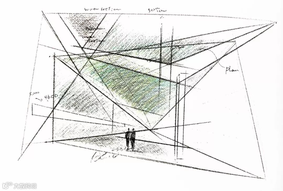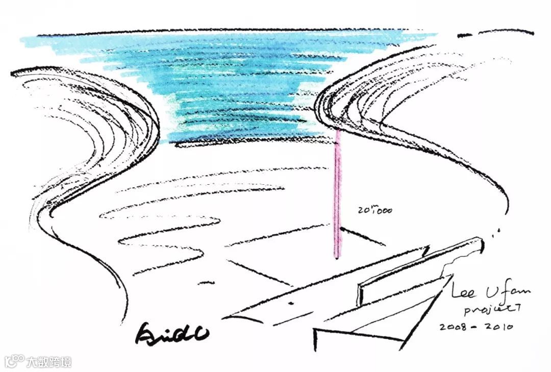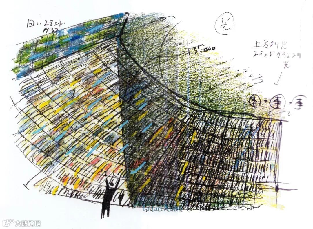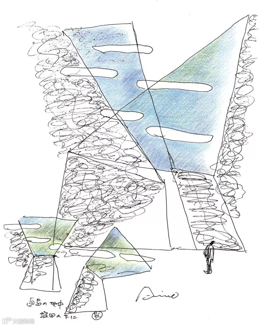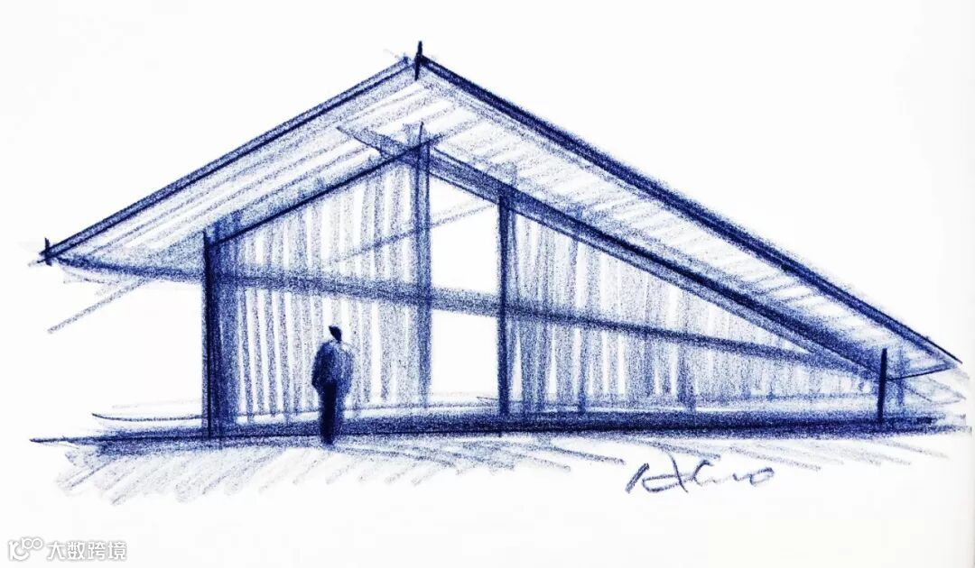 基地位于太湖东侧,北,西,南3个方向都是广阔的太湖,在东北方向延伸着主要的轴线,将建筑物贯穿的斜墙,把这东北方向的轴线挡住,把都市轴的动向平缓的引入入口空间。
