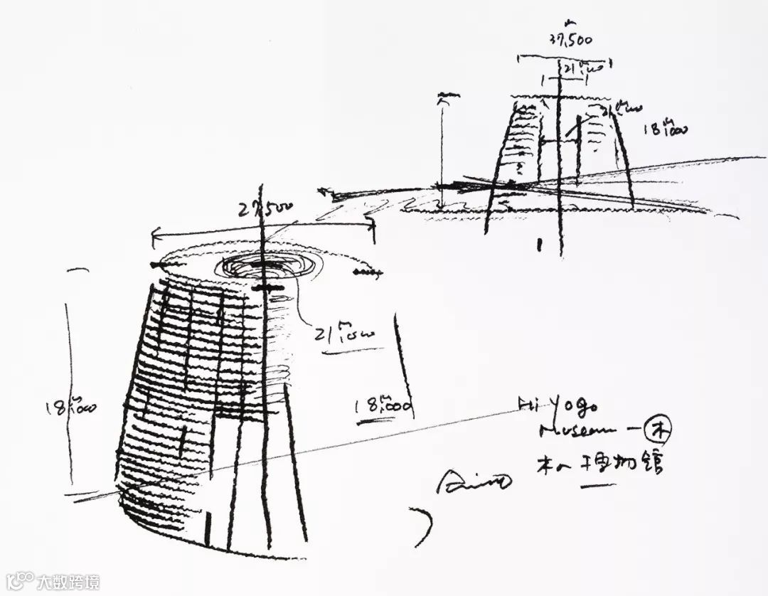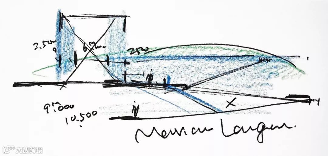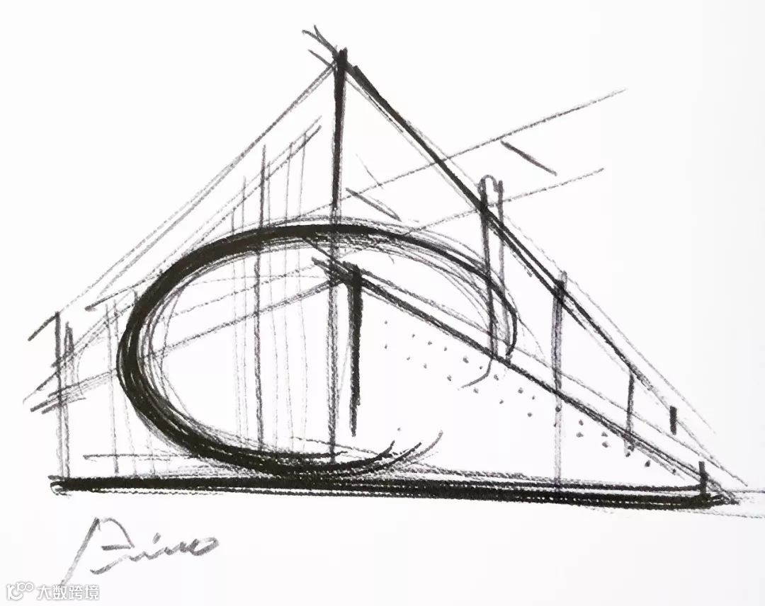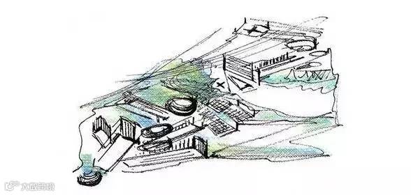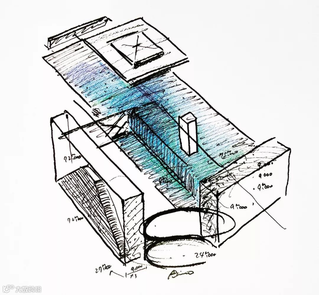 基地位于太湖东侧,北,西,南3个方向都是广阔的太湖,在东北方向延伸着主要的轴线,将建筑物贯穿的斜墙,把这东北方向的轴线挡住,把都市轴的动向平缓的引入入口空间。