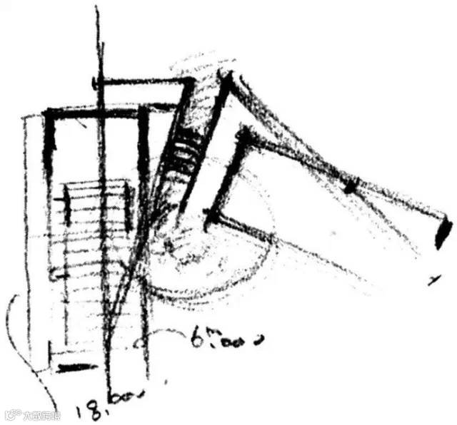 在文学馆的设计中,建筑师通过多处不同标高的复杂游览坡道,将建筑外部空间对城市开放;通过人工处理过的景观区别于自然景观,塑造出场地的外部边界。