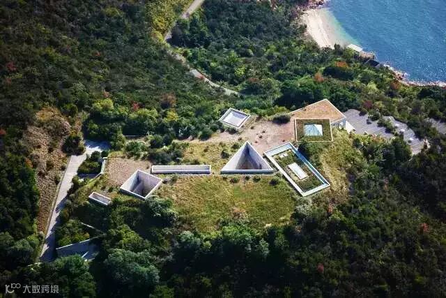 美术馆坐落于山谷的尽头,直通大海。建筑的主体部分位于地下,入口部分为外部开敞空间兼有艺术家的作品展示功能。建筑延续了安藤忠雄清水混凝土的简洁风格,同时也契合了艺术家的作品。在充斥物质的世界中,自然、建筑和艺术品引导我们思考自身的原点。