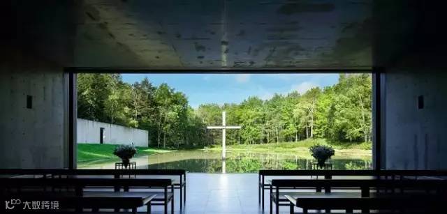 以“与自然共生”为主题,约7.5米高的钢制十字架伫立在水面上,景致随着四季变化。水池的深度是经过精 心设计的,以使水面能微妙地表现出风的存在,甚至一阵小风都能兴起涟漪。