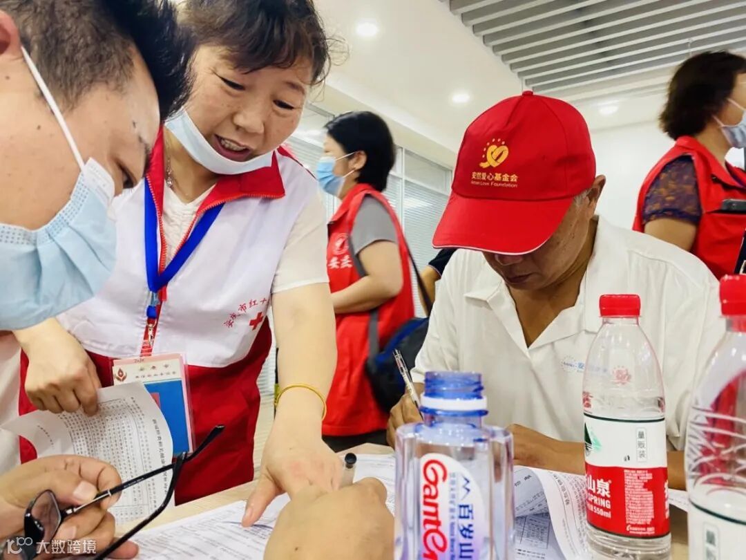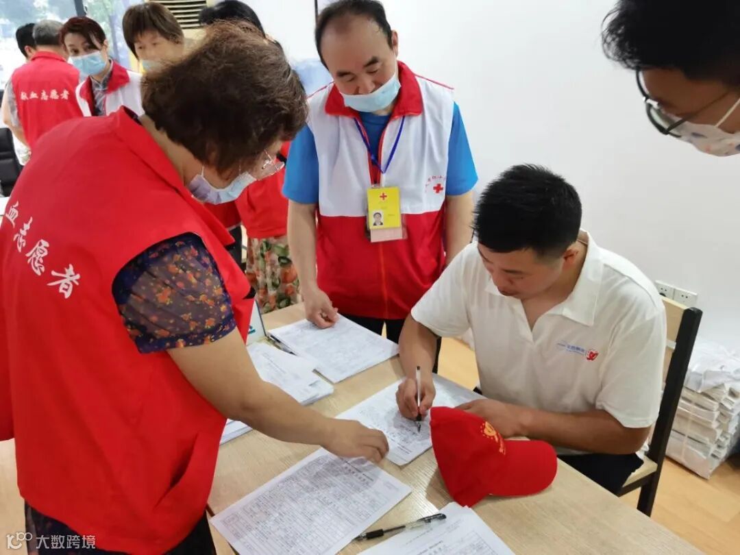志愿者们在排队等候献血接受工作人员详细的询问及献血前注意事项宣导。