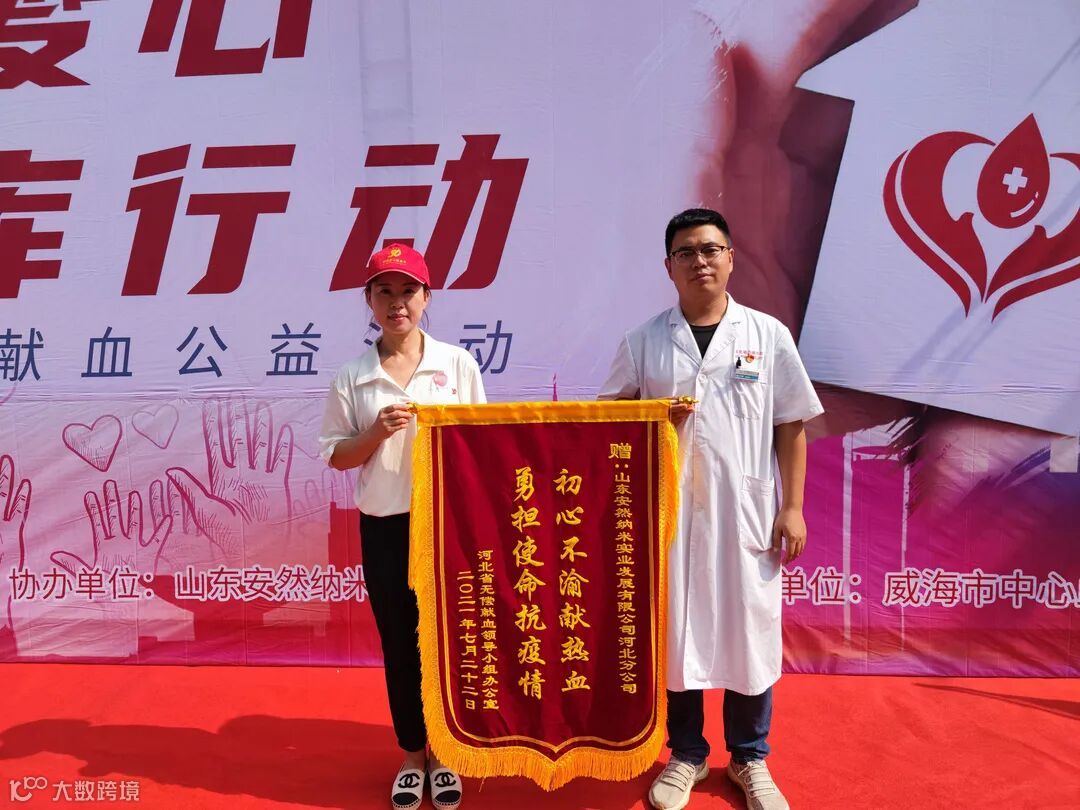 血液中心张子甲部长参与了此次活动,他表达了对安然公司的文化精神的肯定,对安然公司爱心奉献的肯定,并代表河北省血液中心为安然石家庄分公司送上了荣誉表彰锦旗。