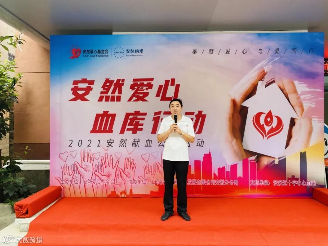 活动首先由安然安徽分公司经理缪然先生致辞,他表示首先感谢安庆红十字血站对安然公司举办本次活动的支持,感谢积极参与无偿献血活动的安然人。安然公司是以“愛・感恩”文化的企业,本着“仁爱、感恩、诚信、利他、良知”的价值观,安然发起此次安然爱心血库行动。