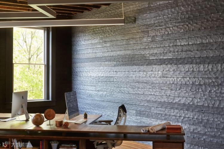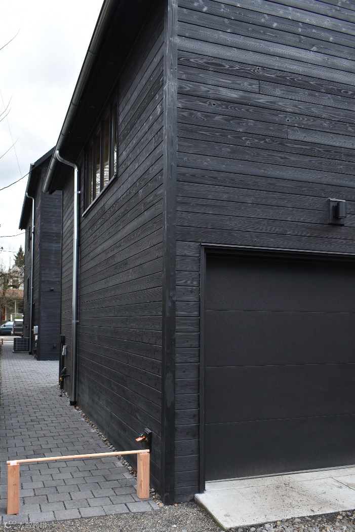 户外使用:产品表面用一种柔性硬化油成分的穿透性油,将松散的烟灰粘附在表面,并保持自然的发泡。干燥后,极小的煤烟被擦除,但表面仍然柔软,这种墙板的寿命最长,但不建议在高流量环境下使用。