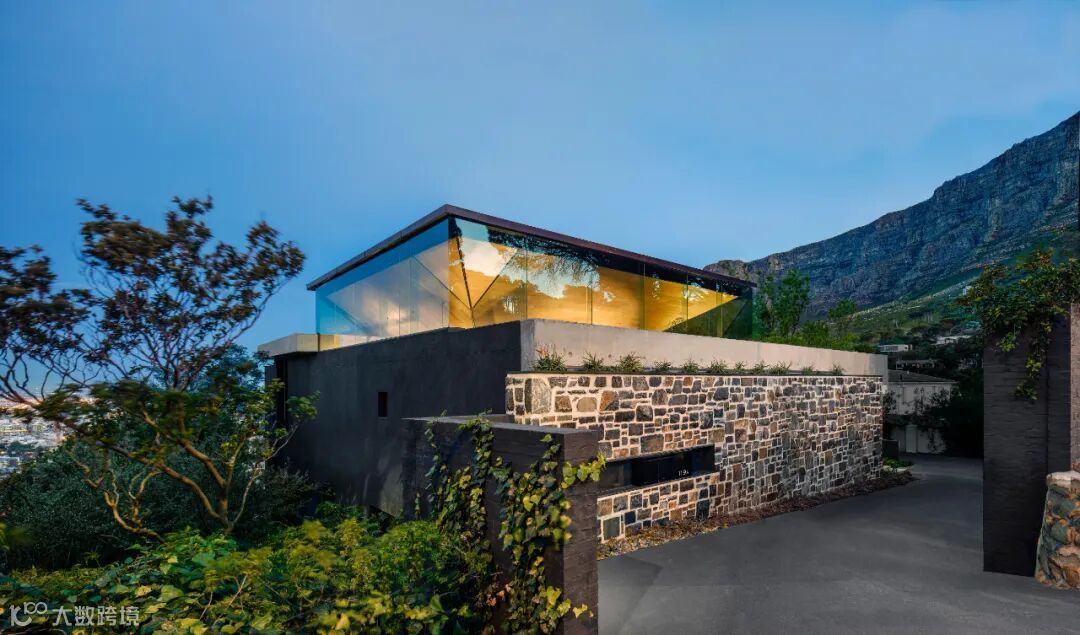 SAOTA:这座住宅位于狮子峰山下,可览桌山、狮子峰、信号山和开普敦城区,以及远处的博兰山脉与葡萄酒庄园,Kloof 119A的设计构思是尽可能地使建筑融入场地环境。住宅屋顶的倒金字塔结构成为其最显著的特征,同时使整个空间得以开阔,上部环绕的高位开窗,将山景、天空、日照、月光引入室内,强调建筑本身与自然之间的联系。
