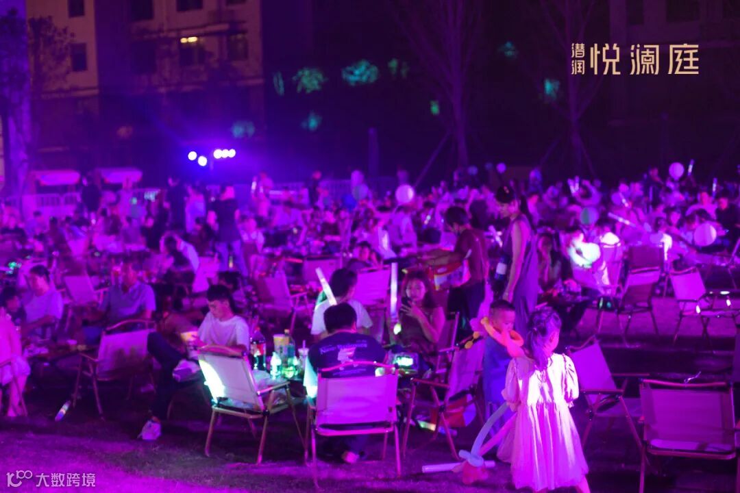 当晚,夕阳余晖下,300余个露营座位座无虚席,悬浮的气球在夜风中轻轻摇曳,与舞台的灯光交相辉映,共同勾勒出一幅悦澜庭社区独有的秋日休闲画卷。大家比邻而坐,在音乐的律动中举杯畅谈,孩子们追逐嬉笑,现场化作一片欢乐的海洋。