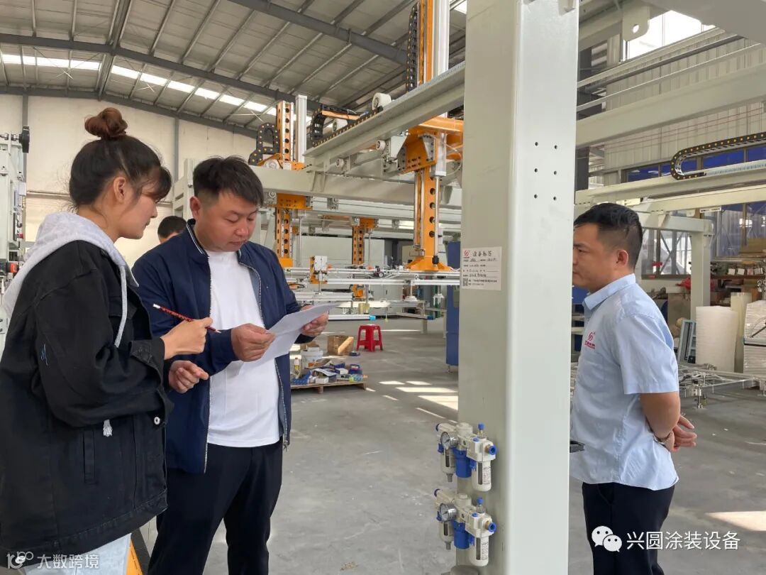 石家庄埃特尼特板业有限公司张总,安工亲临我公司验收贴合产线设备,在公司负责人带领下认真的对每一台设备进行细致的自动化性能讲解及配置说明。