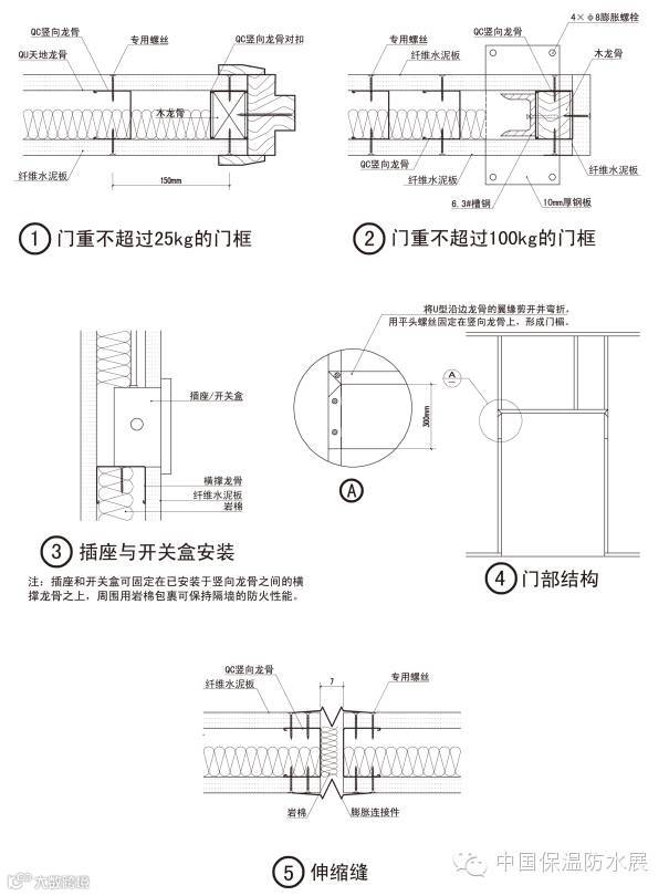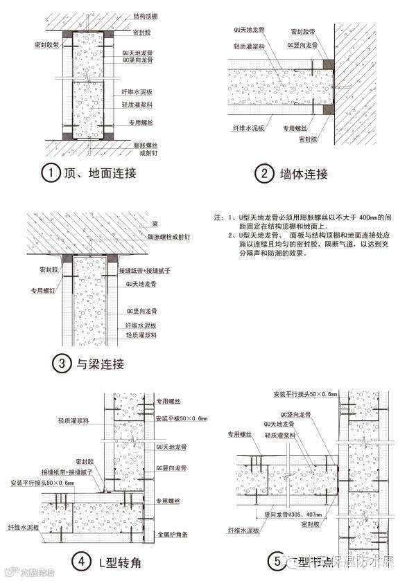 ⑤ 为最大限度地减少板材拼缝处开裂,所有接缝材料应选择具有一定抗拉力、强度及粘结力的材料,满批腻子应选择具有弹性及附着力的材料;