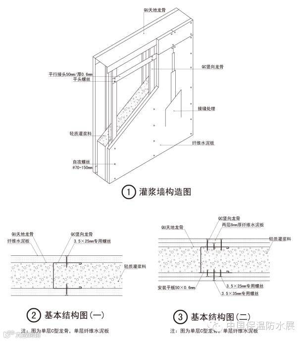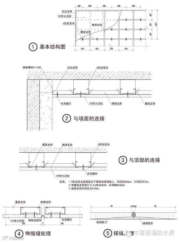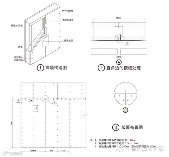 ② 采用双层板构造,同时应相应使用高强自攻螺钉将板紧固;