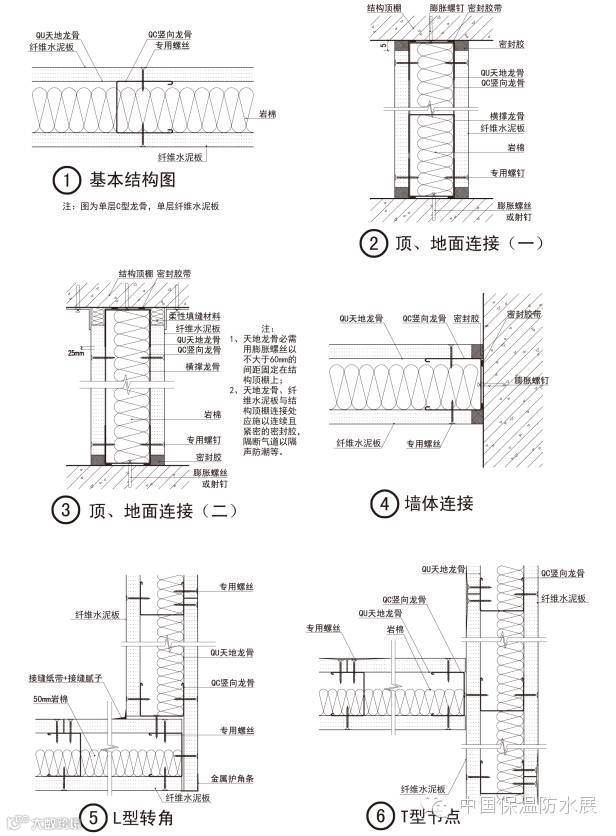 根据不同使用部位及功能,应慎重考虑选用相应的纤维水泥板、轻钢龙骨及墙体构造。