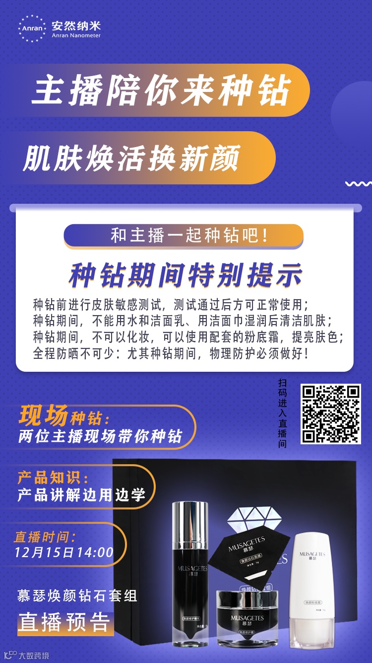 本期“空中课堂”,主播现场和大家一同种钻,快准备好的你的钻石套组,准时相约周二下午14:00,按照主播的讲解,和主播同步感受钻石焕颜的魅力吧!
