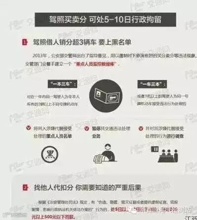 华鑫源检测站不少“本本族”看着自己驾照上上年被扣光的12分,变动了买分的念头。交警叔叔提醒广大车主:用他人驾照代扣分,和交通肇事人找人“顶包”性质一样,不管是“借分”还是“卖分”都属于妨碍公务的违法行为。一旦发现,将出5到10日行政拘留,并处200元以上500元以下罚款