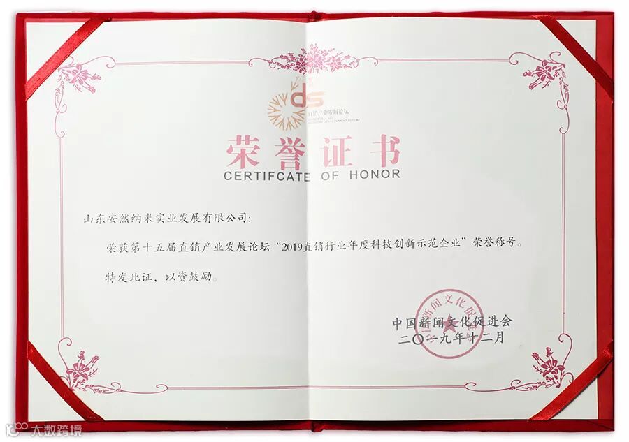 2019年12月1日—3日,第十五届直销产业发展论坛暨未来创享者峰会在北京石油科技交流中心召开。安然公司荣获“2019直销行业年度科技创新示范企业”“2019直销行业国学与传统文化传承标杆企业”两项殊荣。