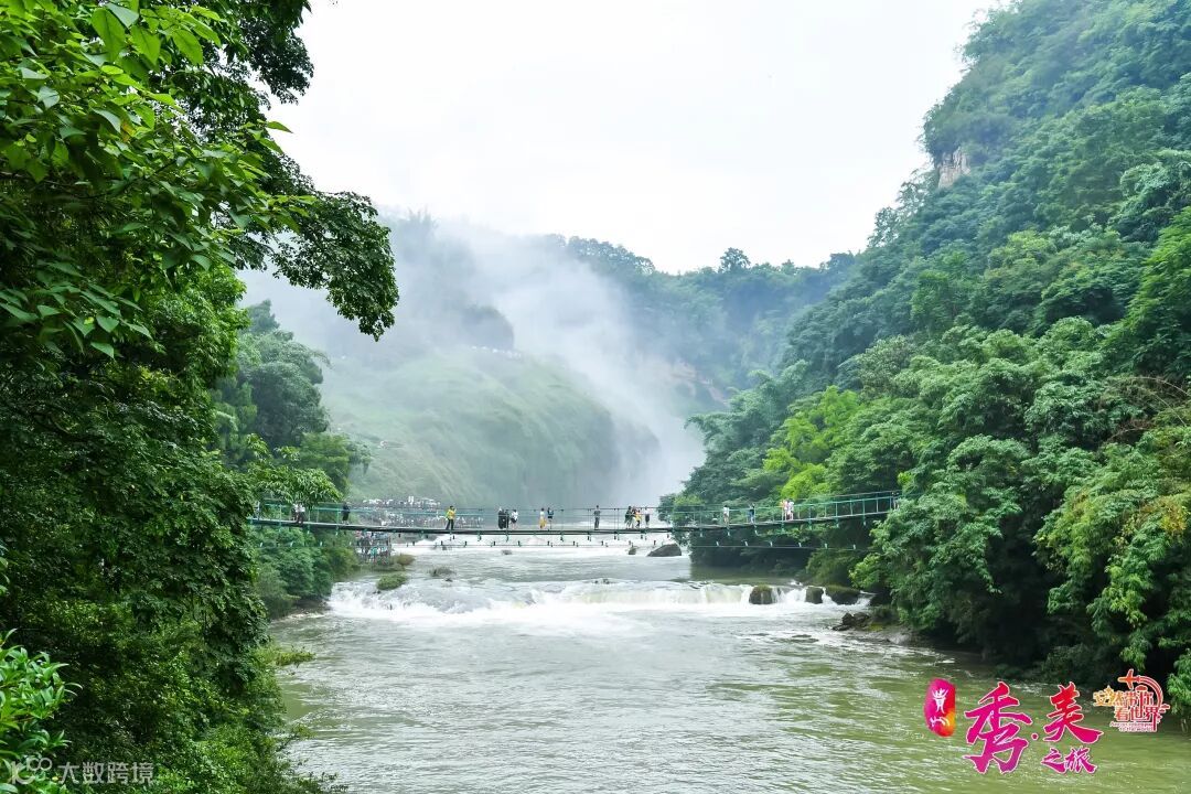树木清香扑鼻而来,满眼绿色葱茏,溪水潺潺而流,又一处天然氧吧。一座吊桥飞架溪水之上,方便游客全方位观看大瀑布景色。