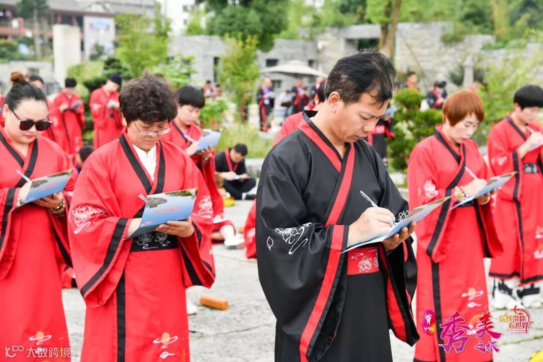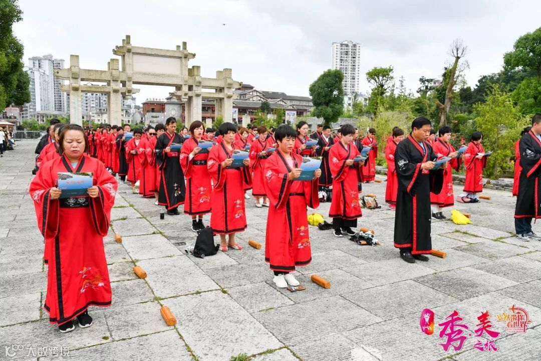 在导师的讲解下,家人们对阳明文化园有了初步的认识。为了加深家人们的体验,安然公司特地为家人们准备了汉服,并邀请到了贵州阳明研究院会员、中国阳明文化园龙冈书院讲师、中国阳明文化园培训师许晓梅老师带领大家一起诵读阳明先生经典文章《教条式龙场诸生》、学习汉代祭拜礼仪。伴随着“起!拜!兴!”的声音,家人们庄严肃穆的完成了祭拜阳明先贤仪式。