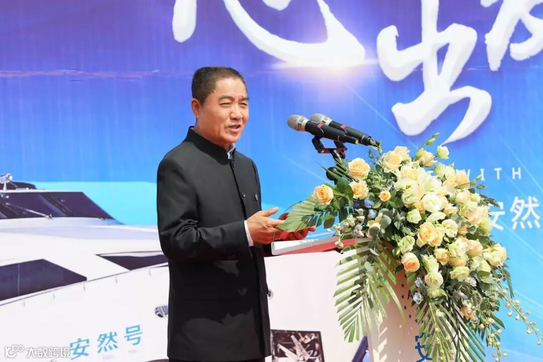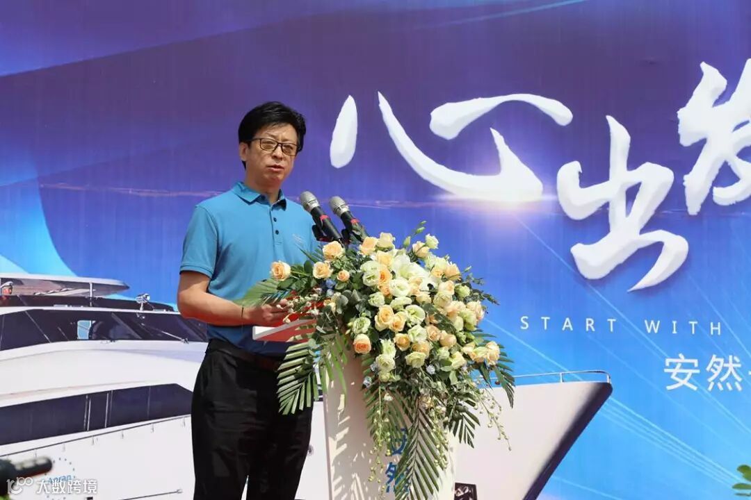 威海西港水产有限公司董事长、威海西港游艇有限公司总经理苗杰海先生致辞,豪华游艇代表着一种生活态度,凝结着人类的智慧,彰显着生活的浪漫华美,能帮助伙伴事业拓展,提升商务谈判的成功率。安然115英尺豪华游艇是集商务洽谈、休闲娱乐于一体的,为安然人定制的新型豪华游艇。苗杰海先生祝愿安然人乘坐安然这艘巨轮,开启新的篇章,创造新的佳绩!