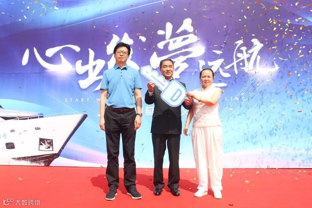 安然公司董事长刘润东先生,副董事长、总裁梁浩女士与威海西港水产有限公司董事长、威海西港游艇有限公司总经理苗杰海先生交接安然号游艇钥匙,安然伙伴们见证了这一荣耀绽放的精彩时刻。