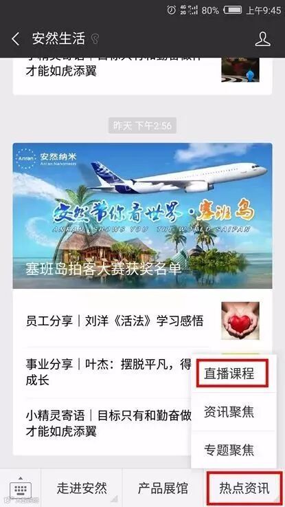 通过点击《安然生活》公众号下面的菜单中的“热点资讯”里的“直播课程”中<商学院直播>进行观看。