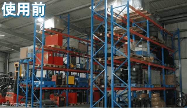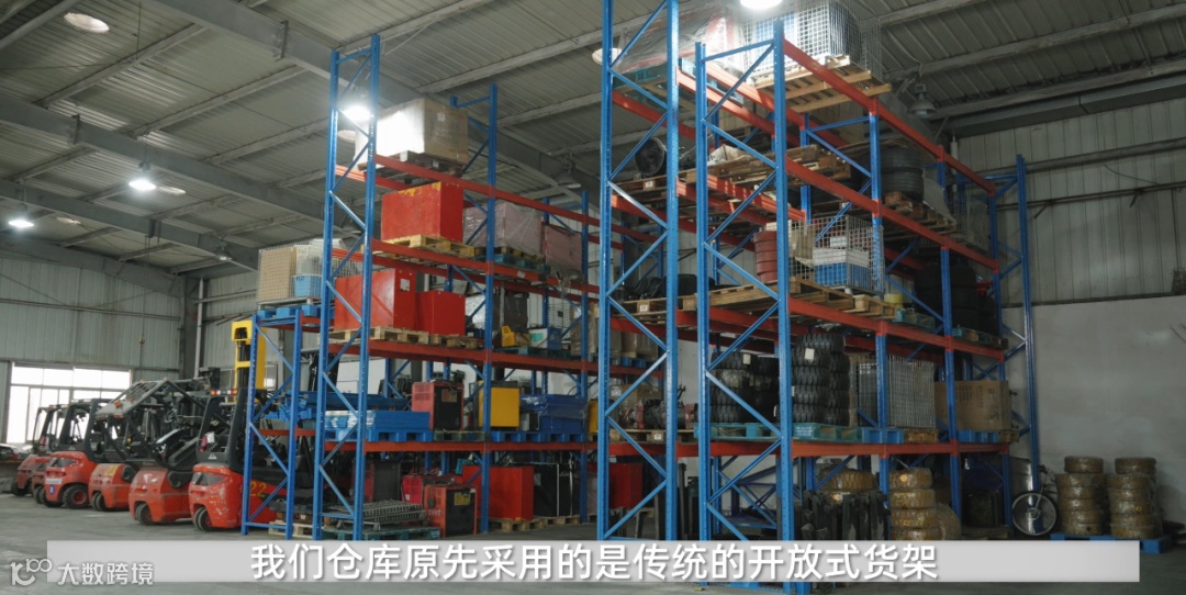 仓库原本存放叉车与自动化设备配件的传统开放式货架,占地面积大且物料易积灰发旧。