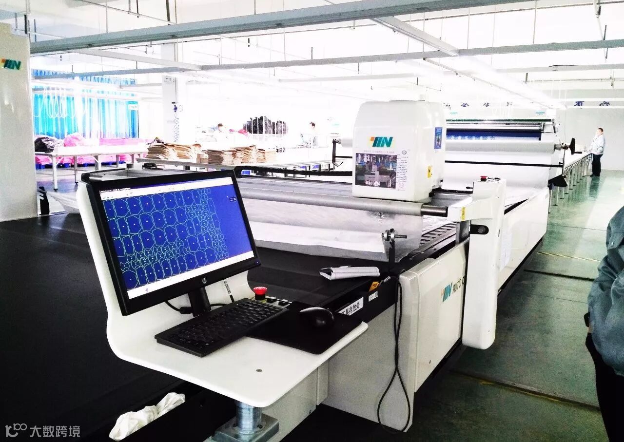 铺好的布就要送到自动裁床上了,它特有的针孔式裁剪方式,能够按照CAD服装打版设计出的最佳裁剪方案,最快速度地裁剪衣服,而且尺寸超级准确!