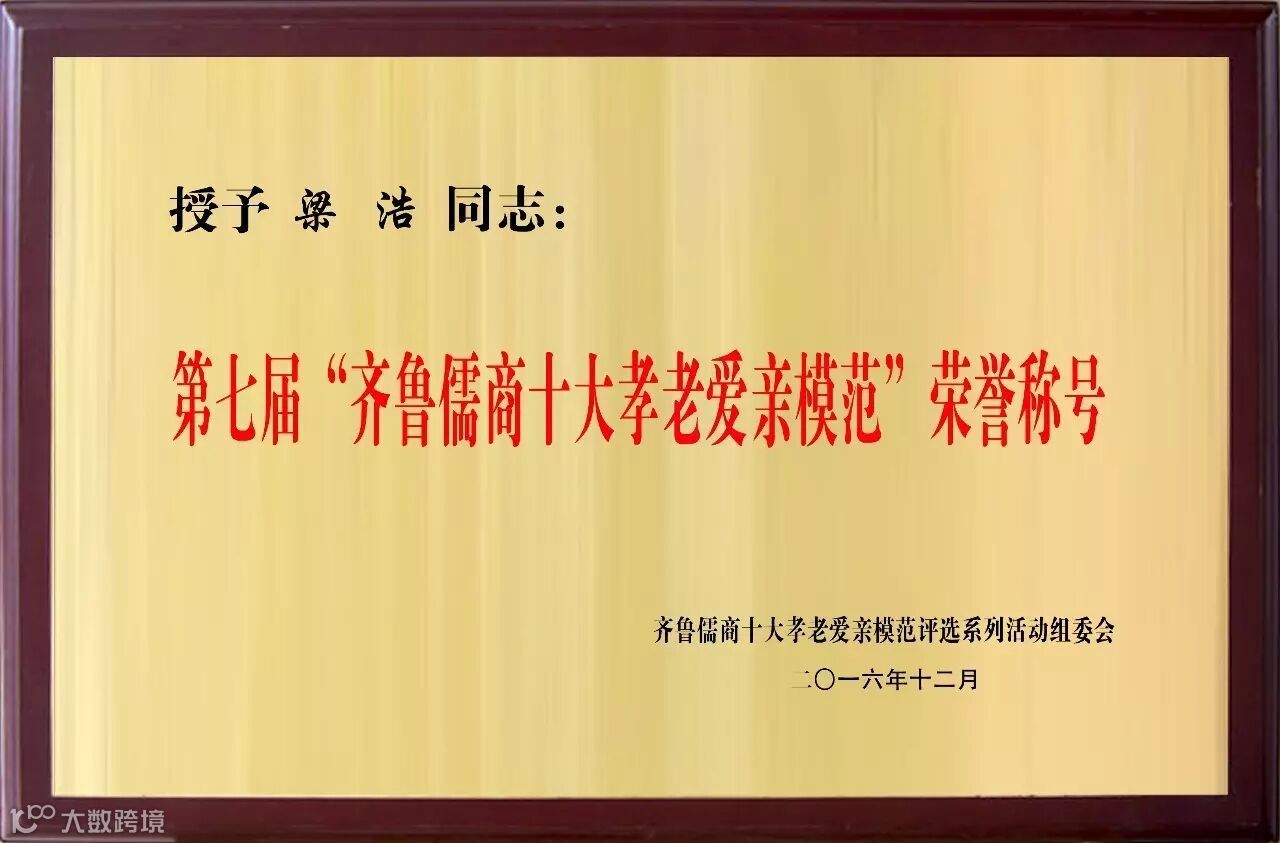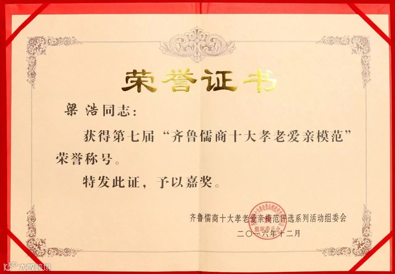 2016年12月29日,由省社科联、省新闻出版广电局等主办的第七届“德耀齐鲁儒商十大孝老爱亲模范”表彰大会在济南举行。安然公司副董事长、总裁梁浩女士荣获“齐鲁儒商十大孝老爱亲模范”荣誉称号。