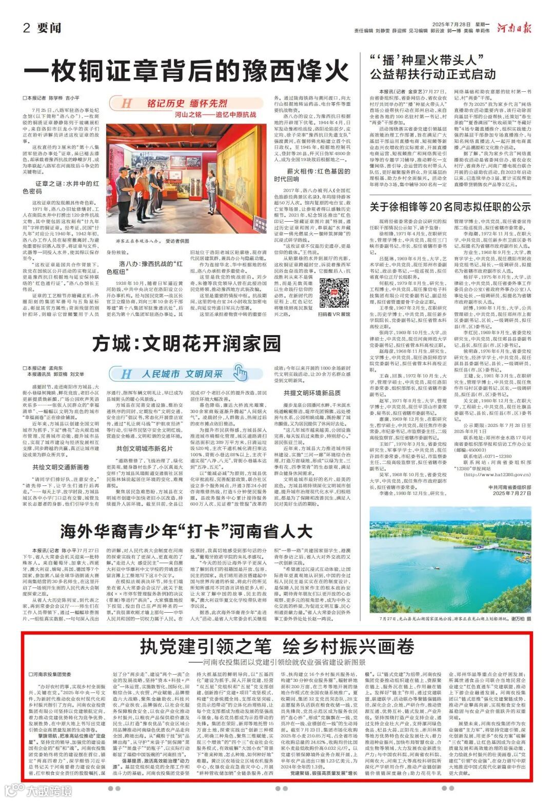 “办好农村的事,实现乡村全面振兴,关键在党。”2025年中央一号文件,为新时代推动农业农村现代化和乡村振兴指引了方向。河南农业投资集团有限公司坚持以党建领航定向,着力推动党建优势转化为竞争优势、发展胜势,在中原大地上书写出党建引领企业高质量发展的生动答卷。