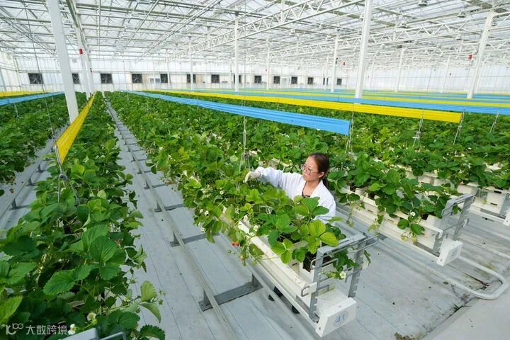 在江苏昆山陆家未来智慧田园“A+温室工场”,工作人员在进行草莓基本特性检测(2025年2月26日摄)。新华社记者 李博 摄