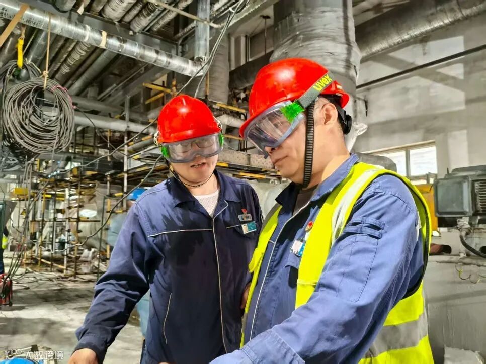 党员在检修现场查看设备检修情况(何珊珊 摄)