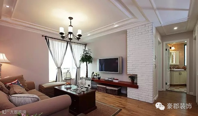 ▲ 电视背景用了文化石,喷上了白色乳胶漆