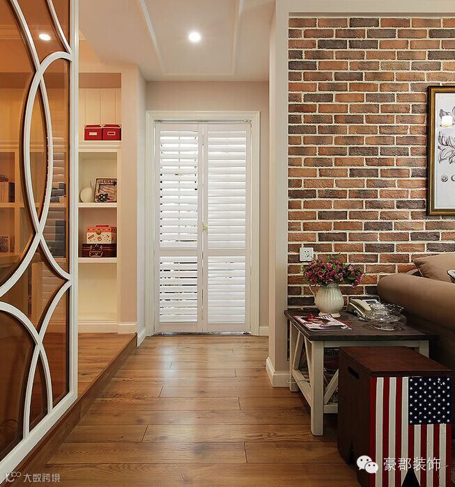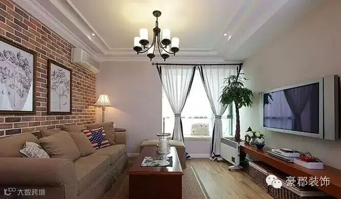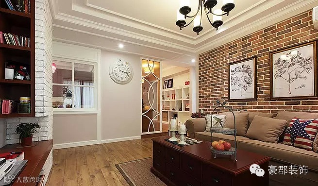 ▲ 现代简美,混搭乡村,主要运用文化石、石膏线、壁纸、木饰面假梁等元素塑造风格