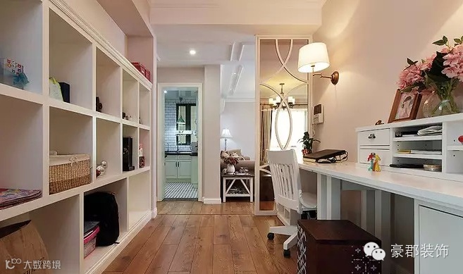▲ 儿童房以木线条玻璃隔断窗和客厅相隔