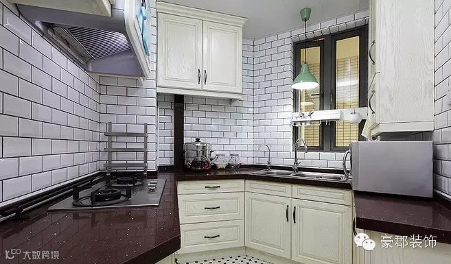 ▲ 厨房黑白搭配,白色门板,黑色台面,白色工字墙砖