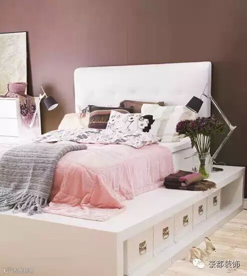 设计重点:紫红色床单鲜艳醒目