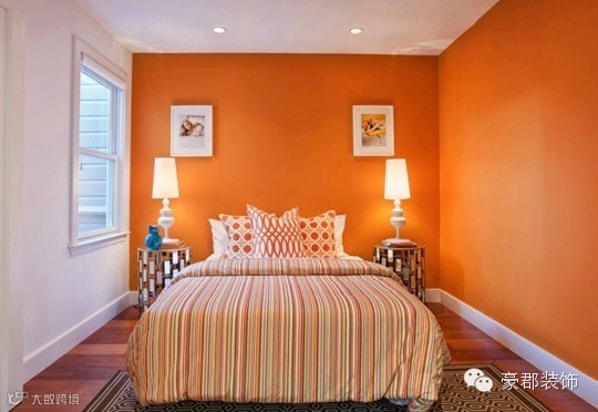 橙色有诱发食欲的作用,所以也是装点餐厅的理想色彩。将橙色和巧克力色或米黄色搭配在一起也很舒畅,巧妙的色彩组合是追求时尚的年轻人的大胆尝试。橘红色又或是橙色,是生气勃勃、充满活力的颜色,是收获的季节里特有的色彩。把它用在卧室则不容易使人安静下来,不利于睡眠。但将橙色用在客厅则会营造欢快的气氛。