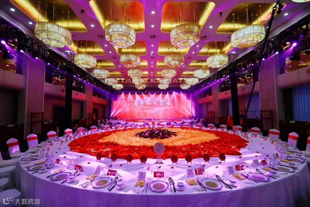 晚宴现场流光溢彩,高端质感的装饰与庄重热烈的氛围相得益彰,每一处细节都彰显着专属荣耀。