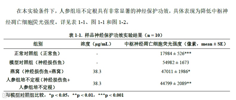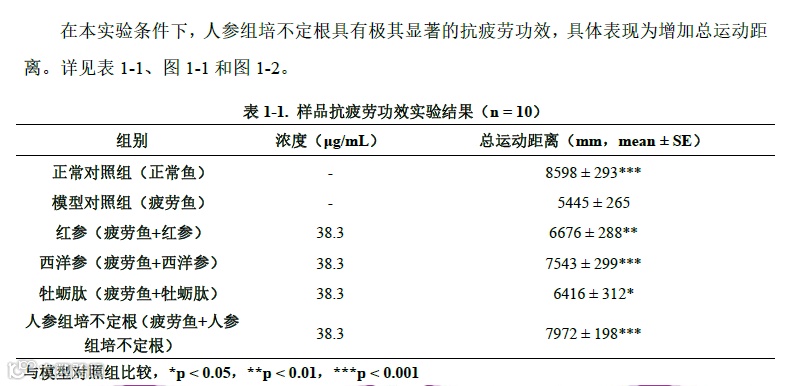 *以上结论源自杭州环特生物科技股份有限公司出具的人参组培不定根与其他成分针对斑马鱼的功效对比检测报告,项目编号为202510090010(仅针对送检样品)