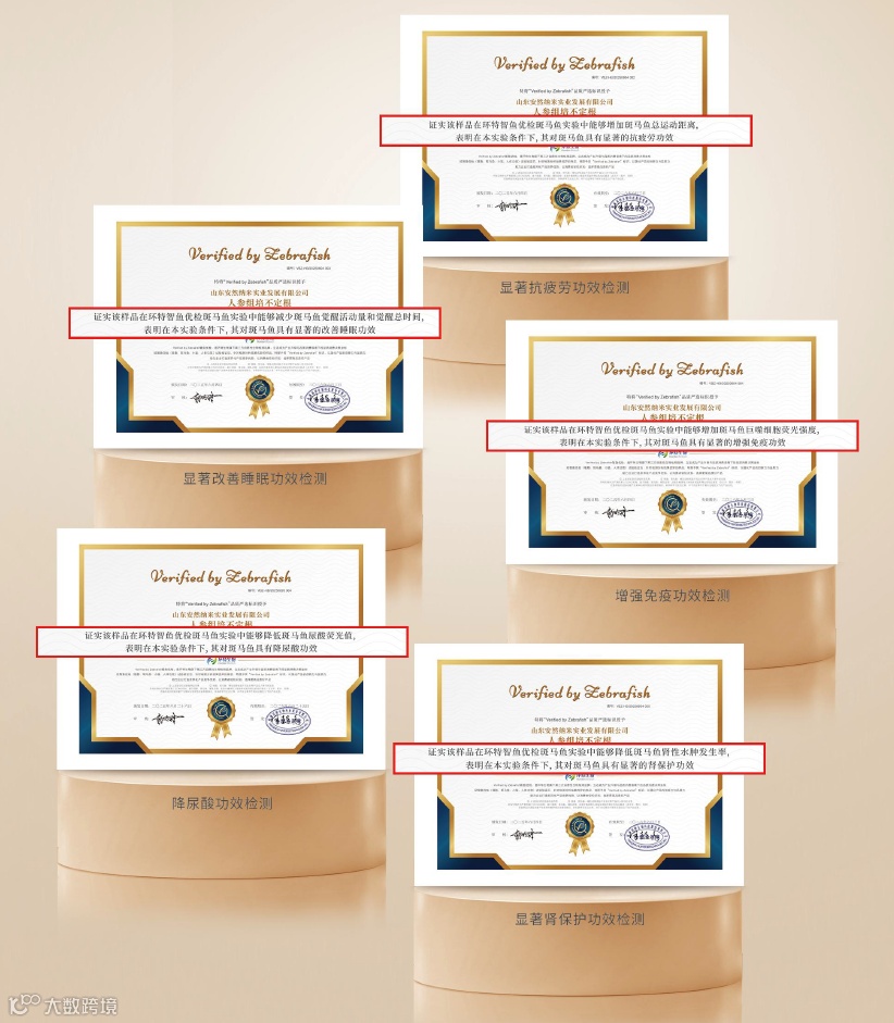 *以上结论源自杭州环特生物科技股份有限公司出具的人参组培不定根针对斑马鱼的功效证书,证书编号分别为VBZ-HB/20250604004,VBZ-HB/20250604003,VBZ-HB/20250604002,VBZ-HB/20250604005,VBZ-HB/20250626004(仅针对送检样品)