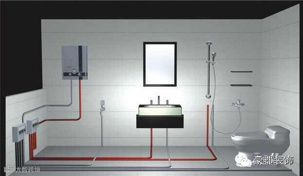 你看懂了吗?就是说:在豪郡装修,我们以后的水管不需要再有接头,不需要再有焊接,直接一根管子通到底,防漏水、防污染,这是最新的技术,最好的新型材料!