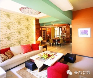小编点评:混搭风格的婚房中,客厅采用黄色、绿色、红色进行搭配,三种都是比较显眼的色彩,但是经过精心调和之后却很融洽的相处在一起,同时摒弃了大红大绿的俗气感,而变的充满情趣。