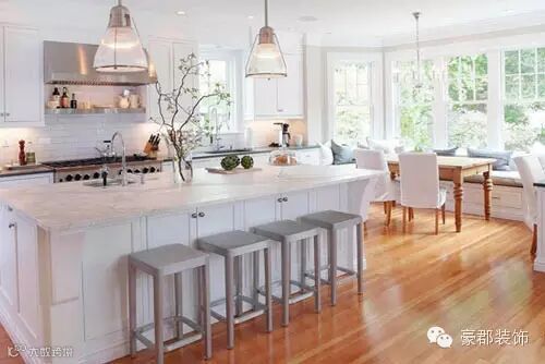开放式厨房面积大,需要更好的采光和通风,良好的空气循环能够帮助减少室内的油烟味,而且柔和室内视觉效果,让厨房空间更温暖。