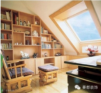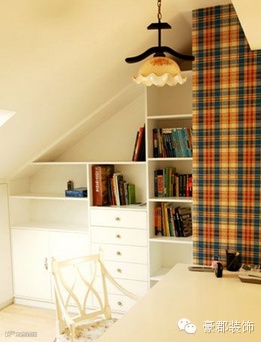 也许家里屋顶低矮空间又小的阁楼装修让你无从下手,怎么规划都难成像样的房间,那不如模仿这14间阁楼小书房的设计,就在墙壁上装些搁板用来存放你珍藏的书籍吧,再配上套小桌小椅,一间独立于高处不易被打扰的静谧小书房就成型了。