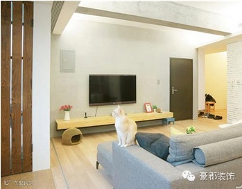 空间里大量使用自然材质,包含电视主墙的水泥粉光,厨房卫浴隔间的漆白砖墙,加上仿旧木地板、黑板漆墙及木纹砖,充分展现出天然纹理及色泽,也让简洁空间带有温馨气息。