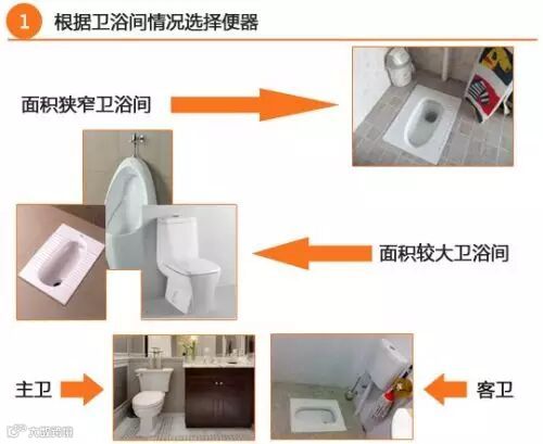 (1)面积狭小的卫浴间:选择蹲便器