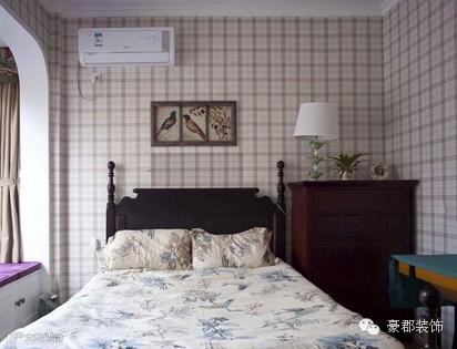 床头如果有一定空余的位置可以摆放陈列一些照片,记录旧时的回忆,壁纸也可以是碎花的,增强田园的休闲惬意。