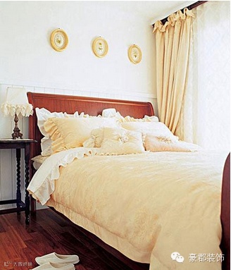 如果实在没招,白色墙面也是可以的,但是对墙面的点缀还是不能少的,床头的墙面上挂一些小工艺品或者相框即可发挥点睛的作用。