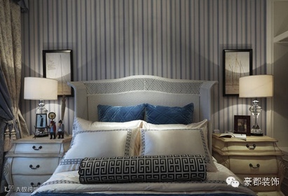 壁纸是墙面装饰的主要方法之一,像这样竖条状的蓝白相间的壁纸,装饰出的老人房一定是清爽利落的。
