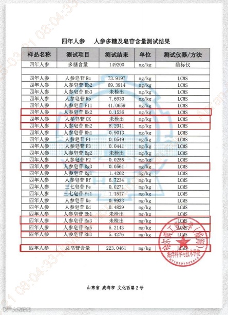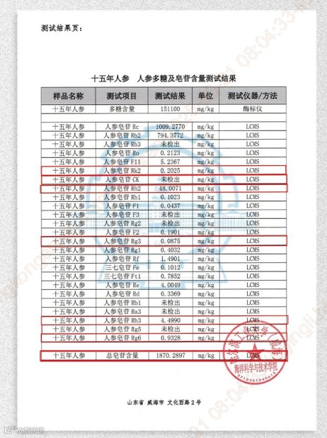 经哈工大实验室权威数据显示,该产物的人参皂苷总含量达到惊人程度,是普通四年人参的 136 倍,其中 Rh2、Rg3 含量更是分别达到普通四年人参的 82 倍、23 万倍 。