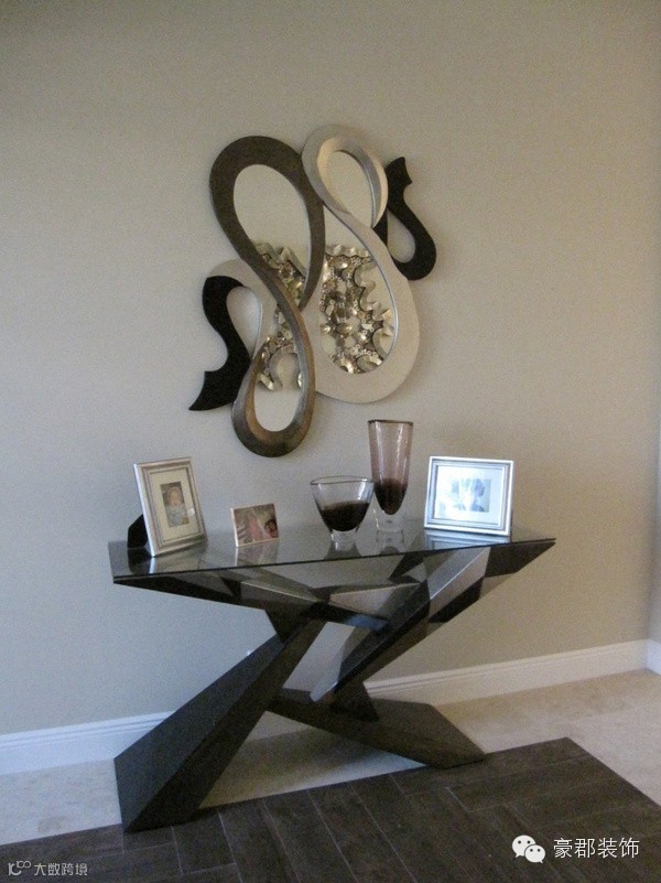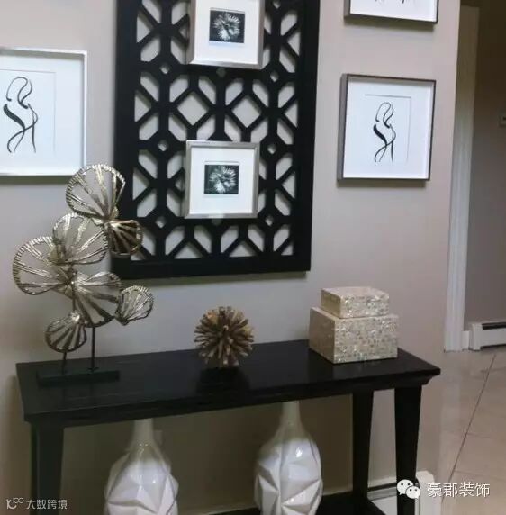 利用了抽象画和抽象工艺礼品打造的艺术欣赏型玄关。