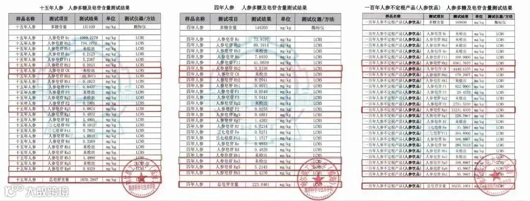 经哈工大实验室数据显示,特等野山参干细胞产物的皂苷总含量是普通四年人参的136倍,Rh2、Rg3含量等有益成分分别是普通四年人参的82倍、23万倍。